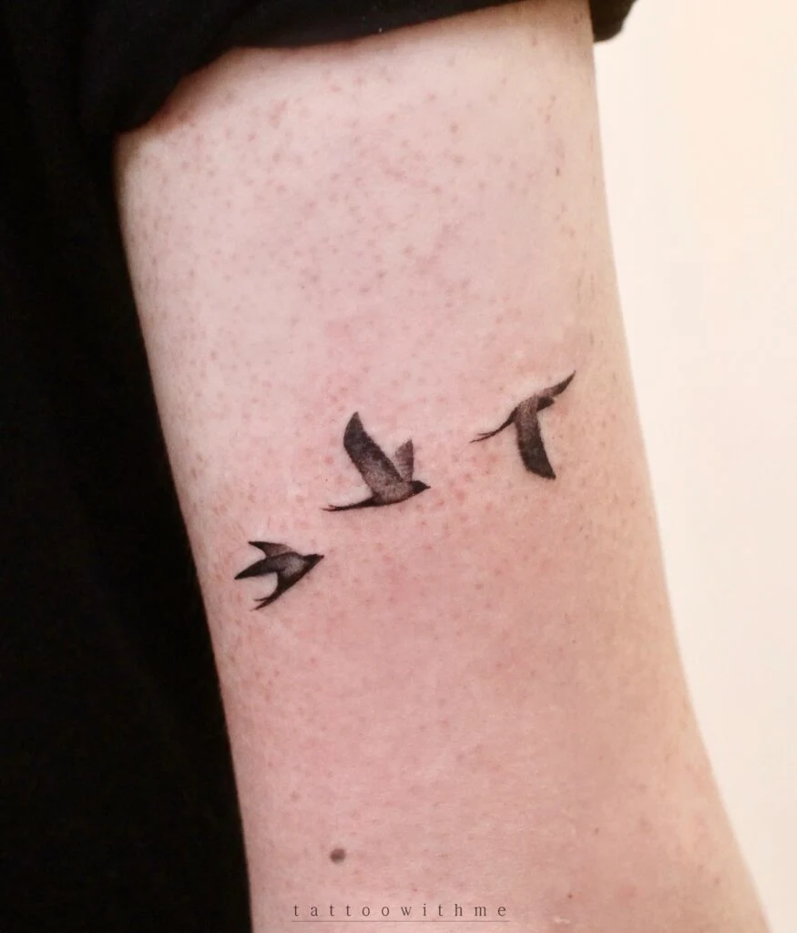 Their varying positions suggest movement and freedom, making this design symbolic of independence, letting go, or a journey. It’s a subtle yet powerful choice for anyone who values personal growth or a connection to nature. Perfect for those who love delicate, meaningful ink.