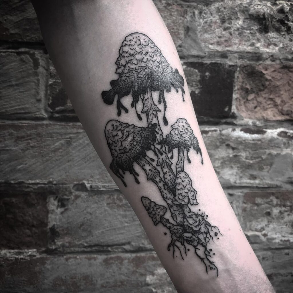 Inky Cap Mushrooms Forearm Tattoo