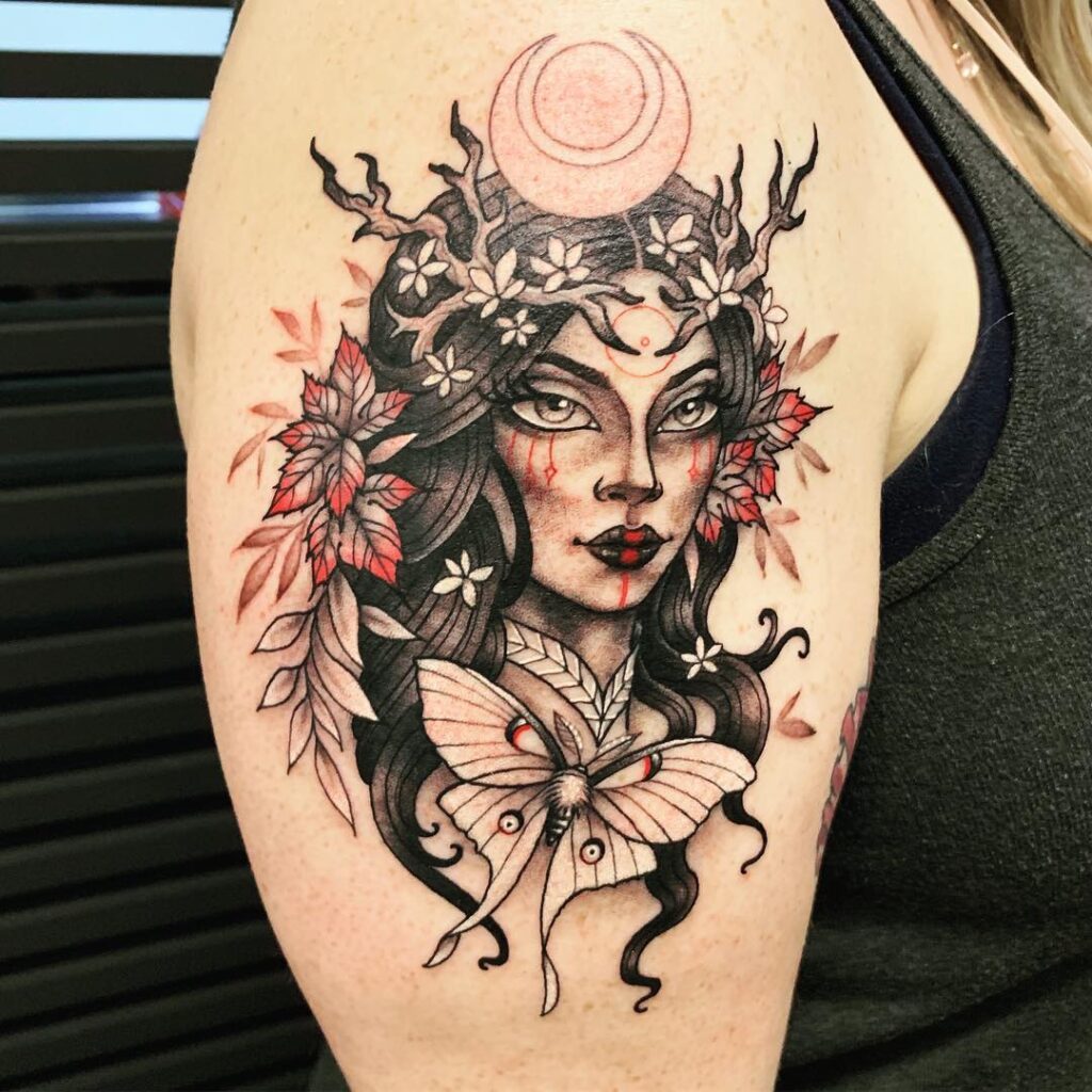 Moon Goddess with Butterfly Tattoo