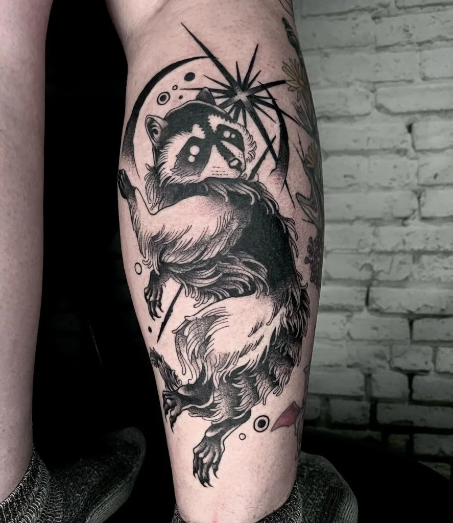 This fun, slightly rebellious design fits nicely on the calf or forearm. It’s perfect for someone who loves woodland creatures, bold flashes of color, and a touch of unexpected humor in their body art.