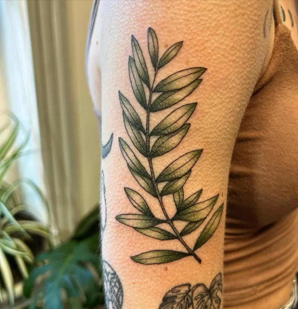 Green Fern Leaf Tattoo
