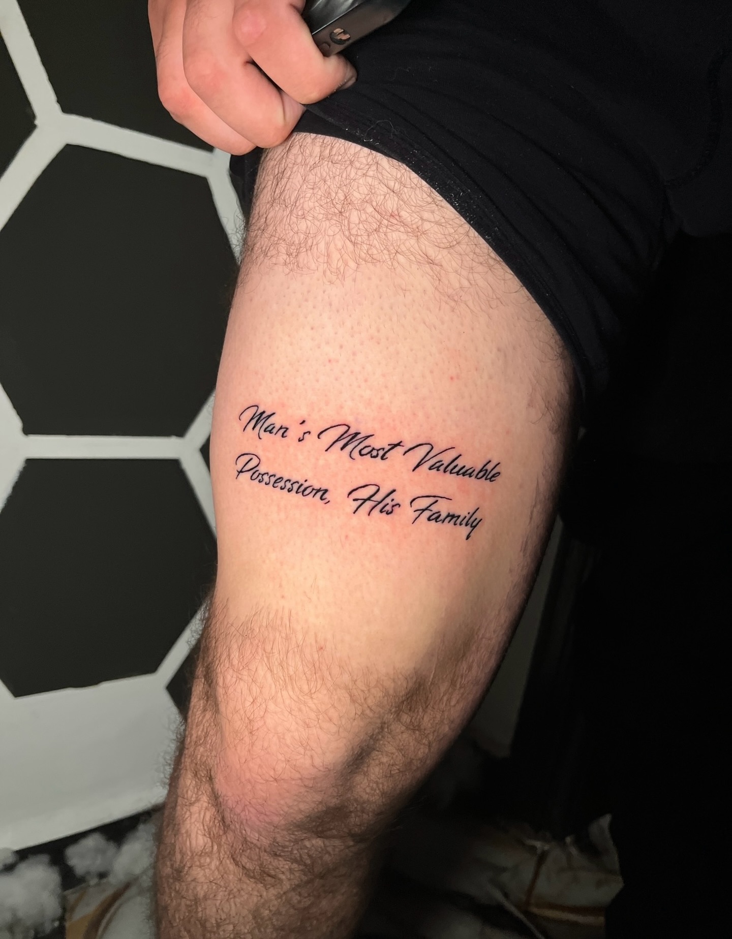 By highlighting a powerful statement about family, the tattoo reflects loyalty, love, and the deep value placed on family bonds.