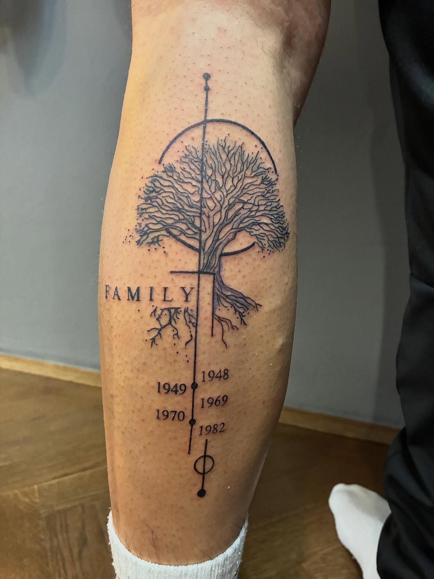 Family Tree and Birth Years Tattoo