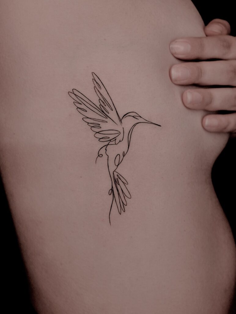 Fine Line Hummingbird with Leaves on Shoulder