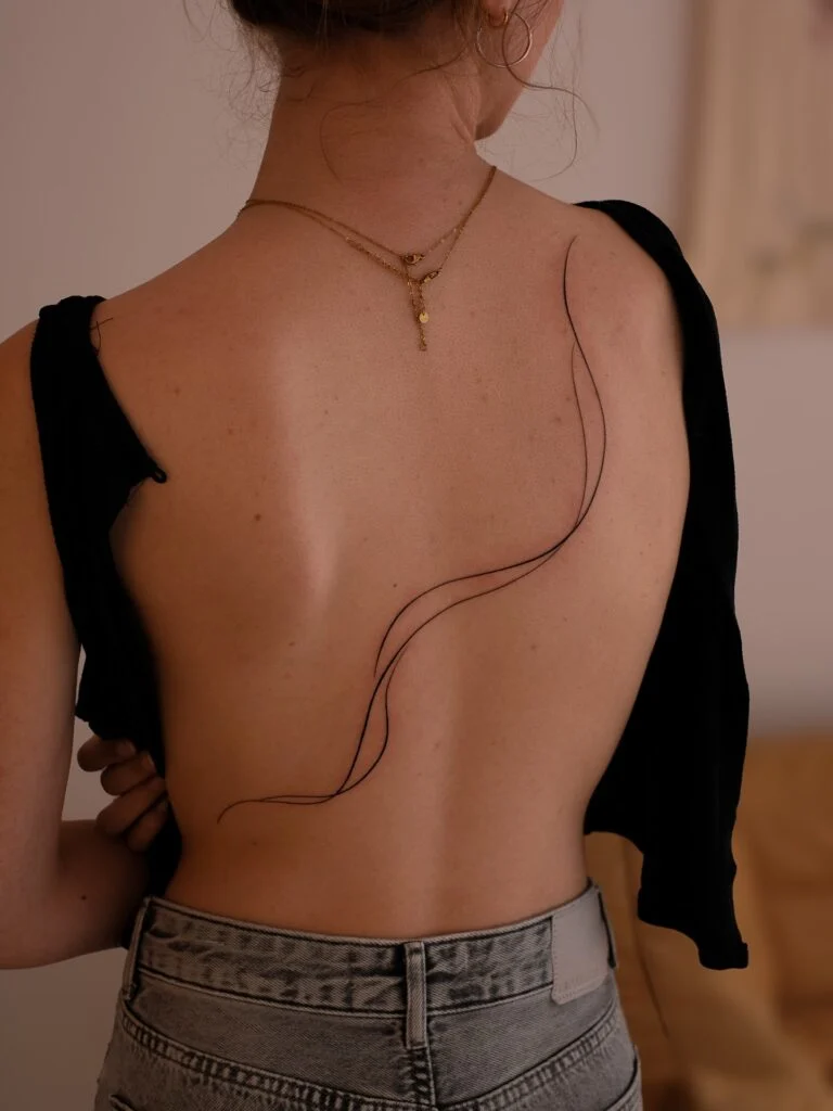 Minimal Fine Line Flow Tattoo on Back