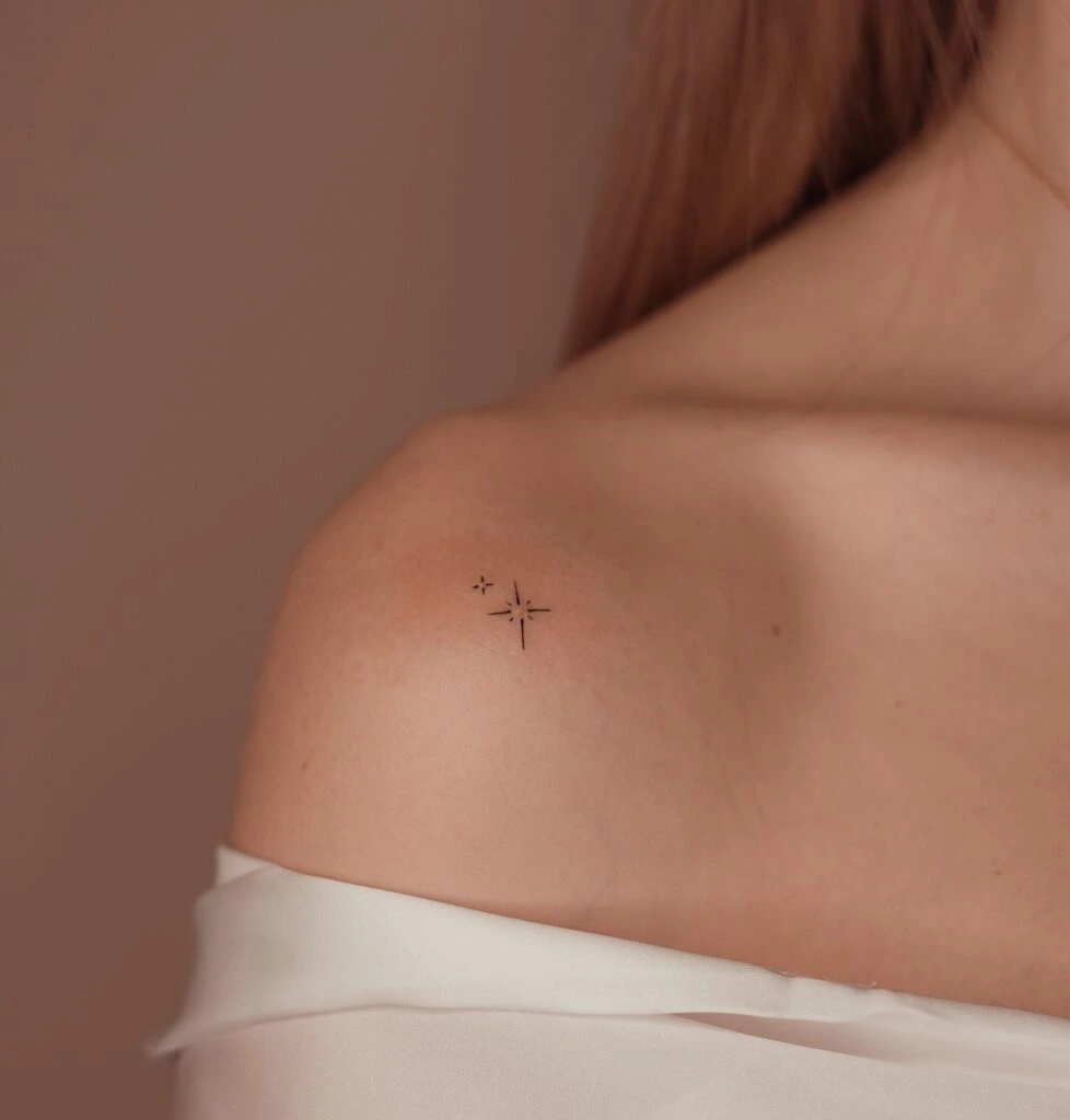 Minimal Fine Line Star Tattoo on Shoulder