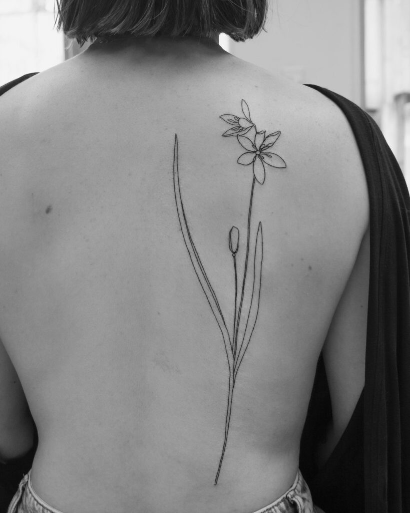 Fine Line Lily Tattoo on Back