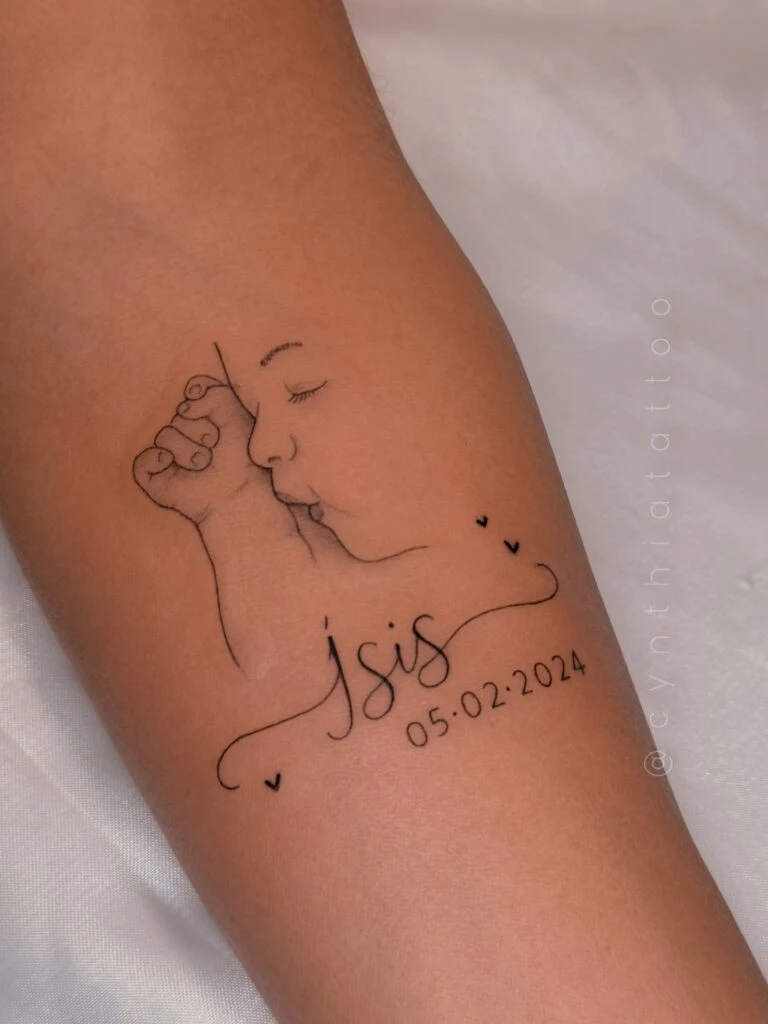 This tattoo blends artistic creativity with sentimental meaning, making it ideal for honoring a loved one. It’s a unique and heartfelt design that captures beauty, identity, and connection in a timeless way.