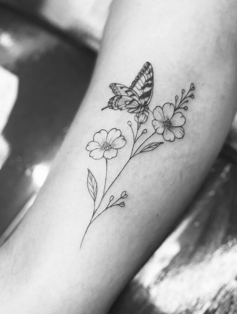 Butterfly and Wildflower Tattoo