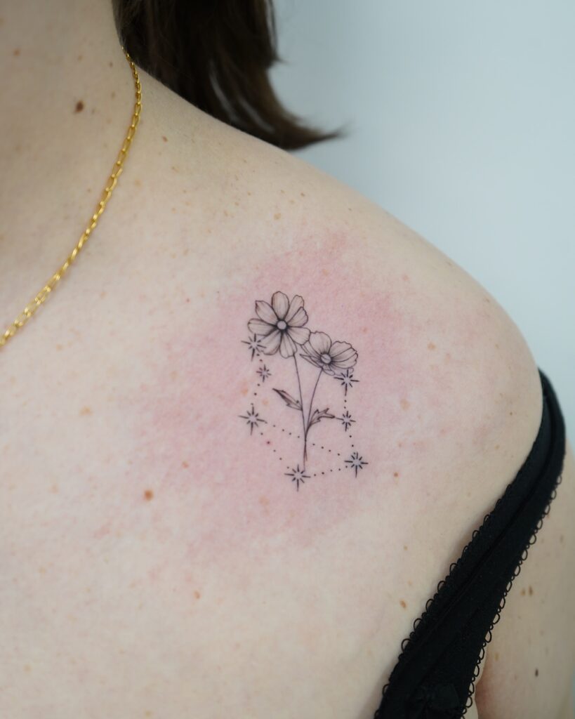 Cosmos Flowers with Star Constellation Tattoo