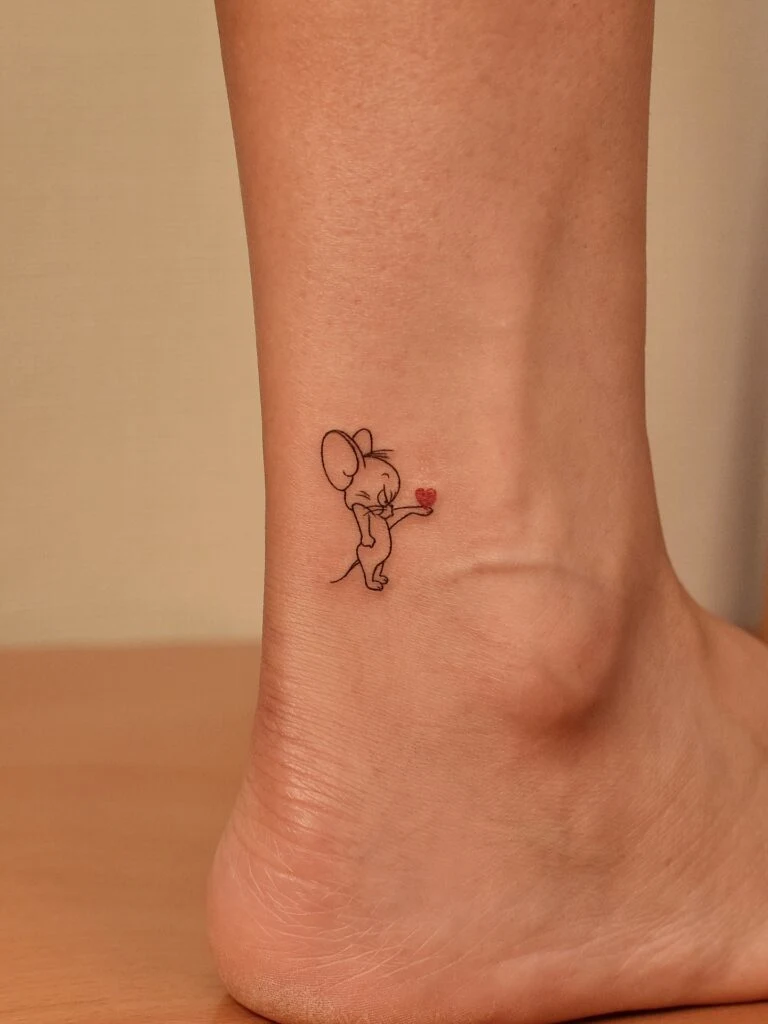 Placed on the ankle, it feels playful, charming, and full of character. The mouse adds a touch of whimsy, and the heart conveys affection, warmth, or love.