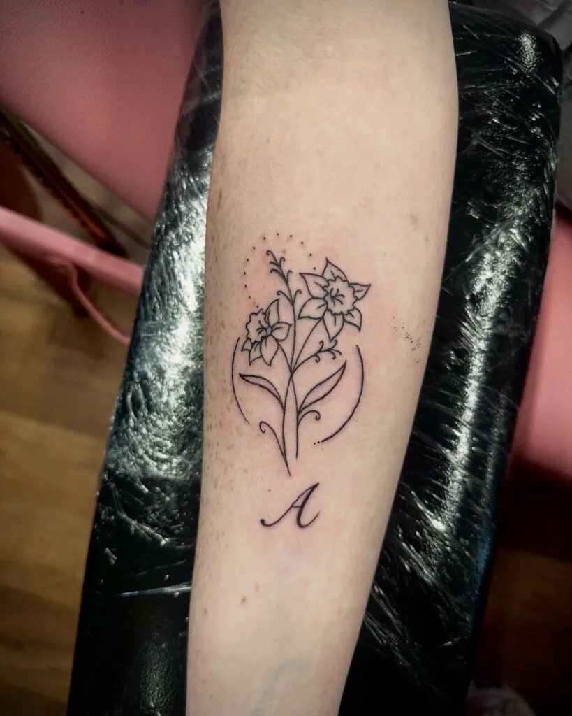 Daffodil Fine Line Tattoo with Initial