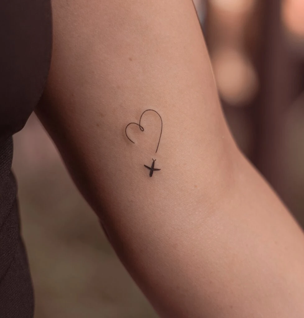 The flowing single-line heart creates a sense of simplicity and elegance, while the cross adds deeper spiritual meaning. Positioned on the arm, it becomes a subtle yet powerful reminder of faith, love, and devotion.