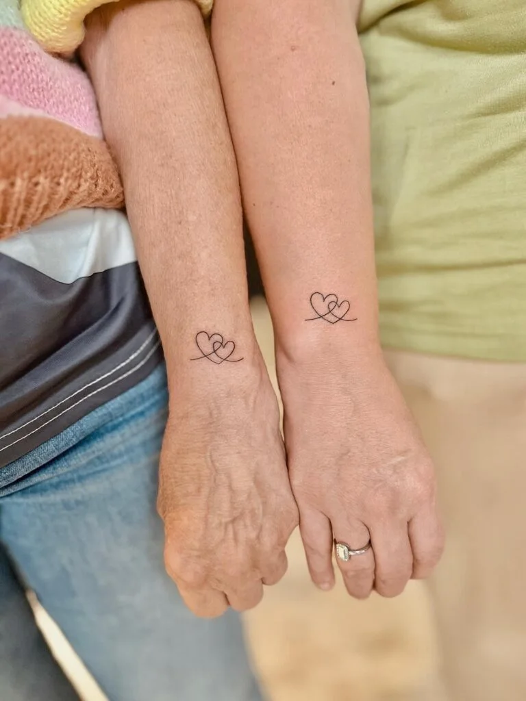 Placed on the wrist, they remain visible and intimate, serving as a daily reminder of closeness. The design’s simplicity ensures timelessness, making it a heartfelt and elegant choice for matching tattoos.
