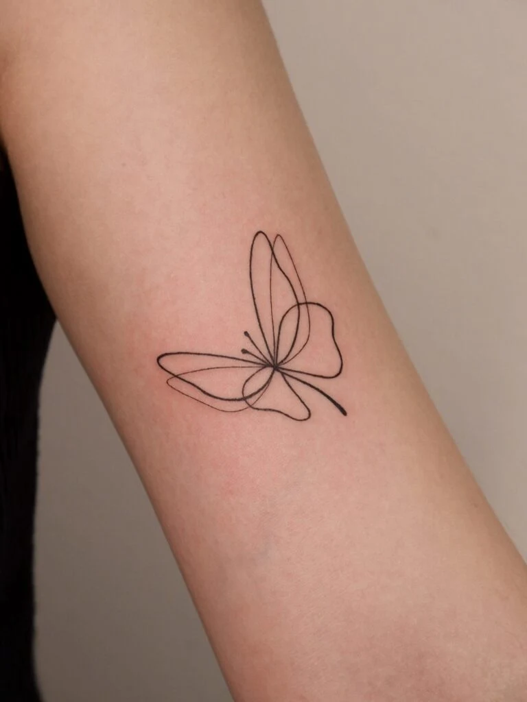 Minimalist Butterfly Line Tattoo