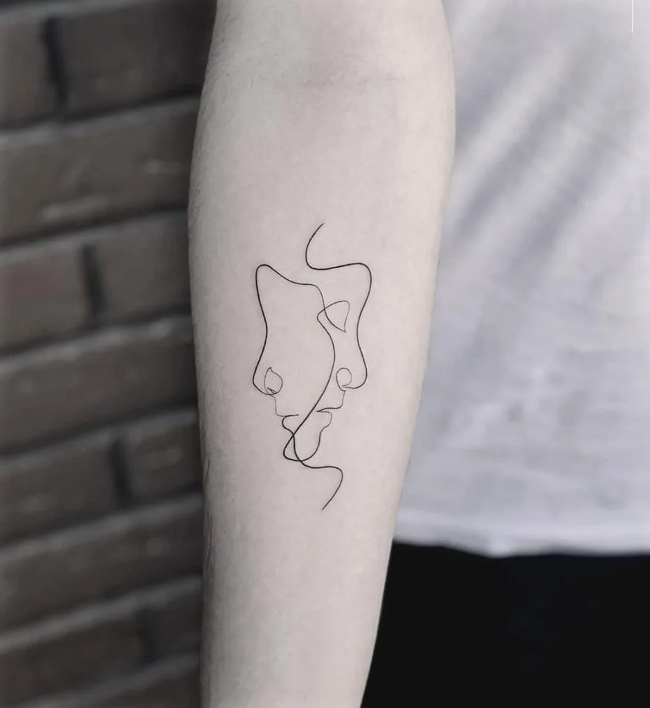 Minimalist One-Line Faces Tattoo