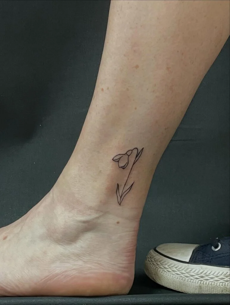 Minimalist Snowdrop Ankle Tattoo
