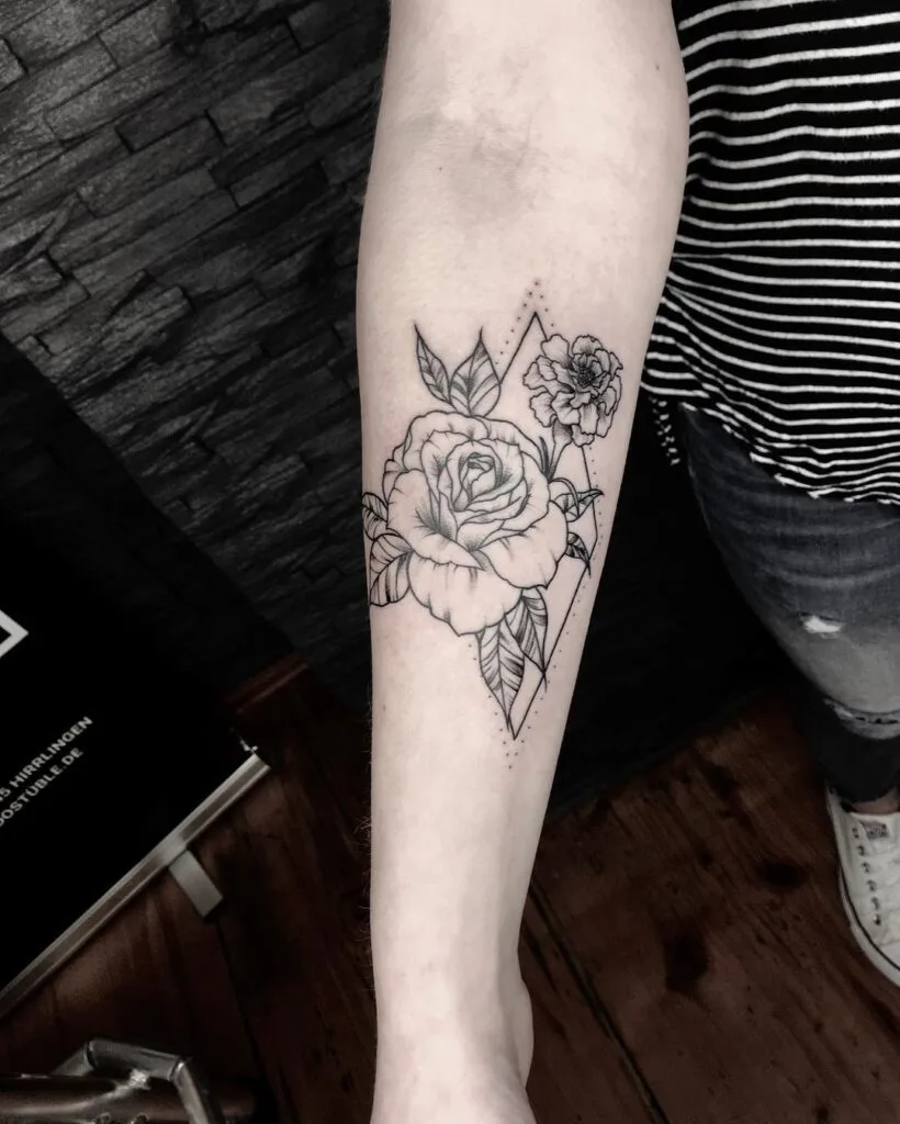 Rose and Carnation Geometric Tattoo