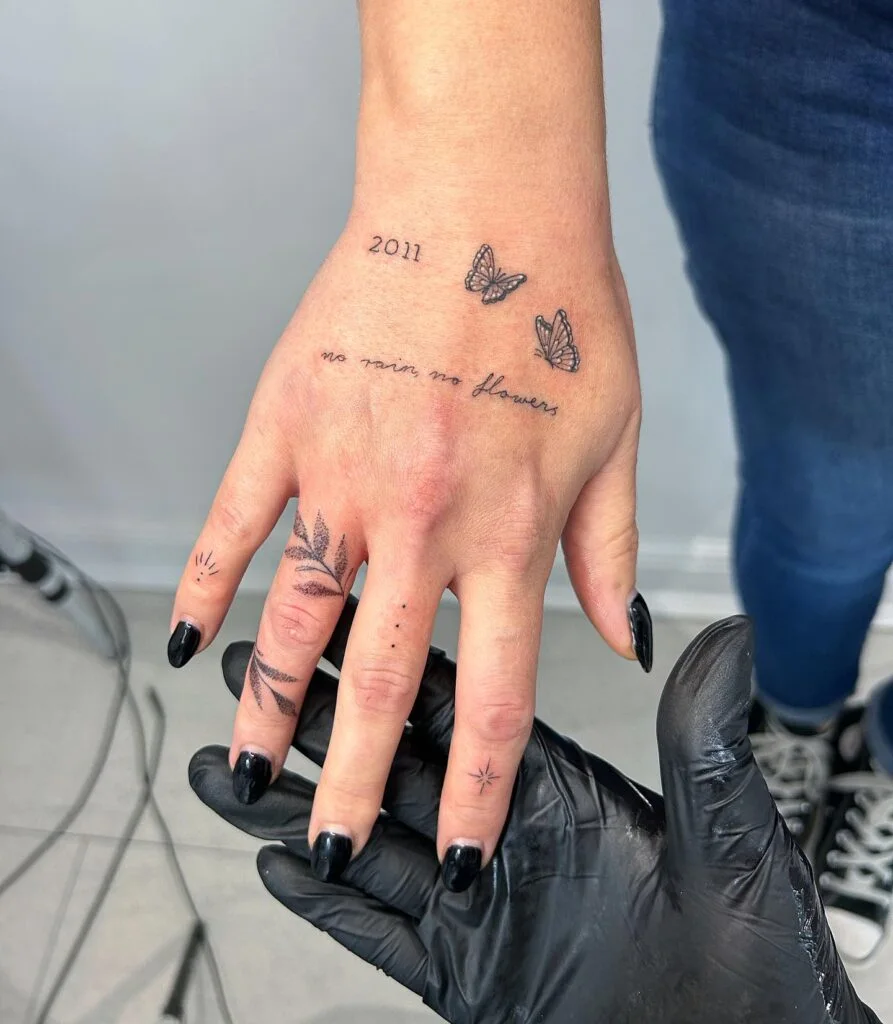 This combination feels balanced and adaptable, making it easy to wear alone or with rings and other hand tattoos for added personality and charm.