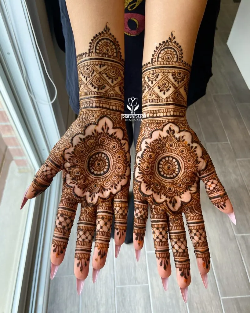 Bold Mandala-Inspired Full Palm Mehndi Design