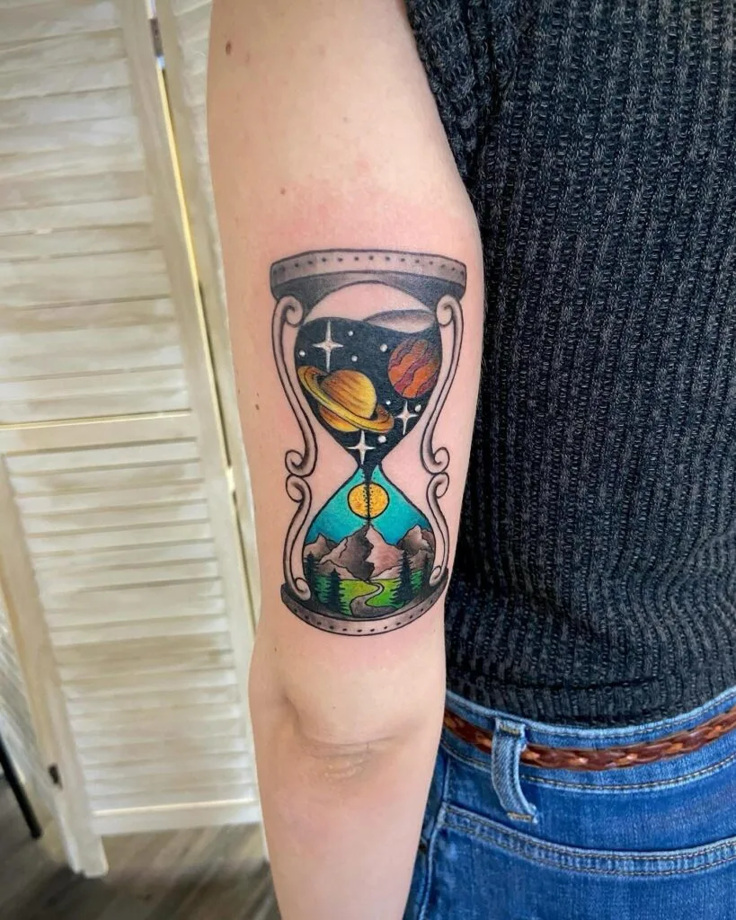 Cosmic Landscape Hourglass Tattoo
