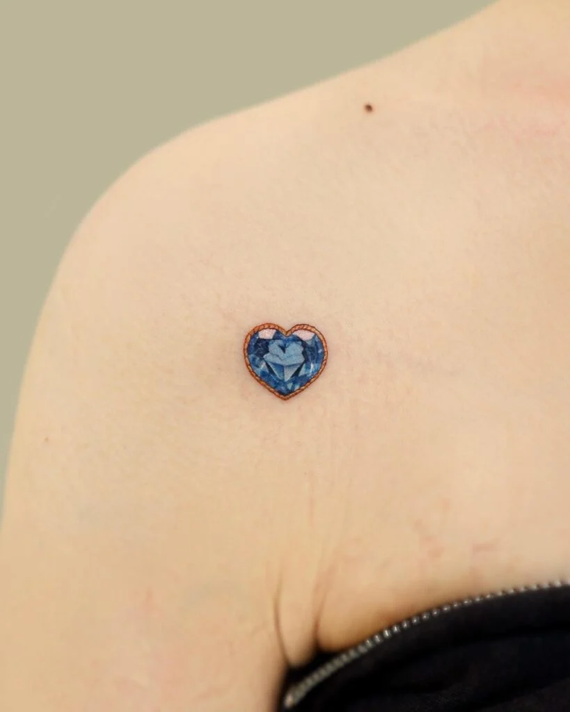 Mini Sapphire Heart Shoulder Tattoo