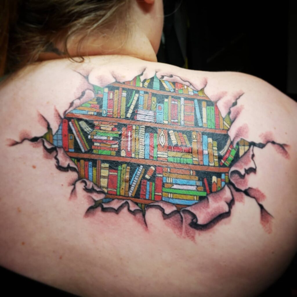 3D Bookshelf Back Tattoo