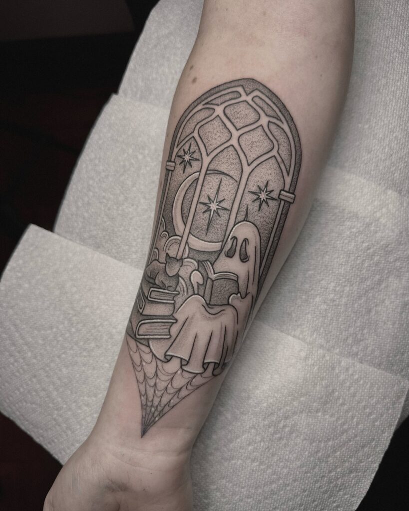 Ghost Reading by Gothic Window Tattoo