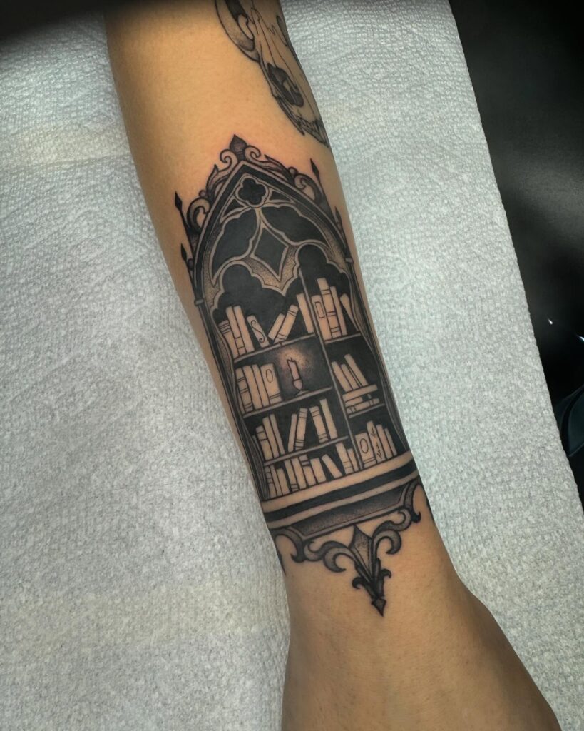 Gothic Bookshelf Window Tattoo