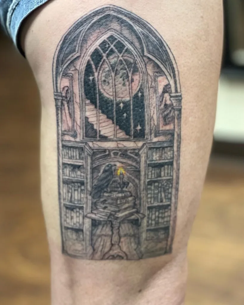 Gothic Library Window Tattoo