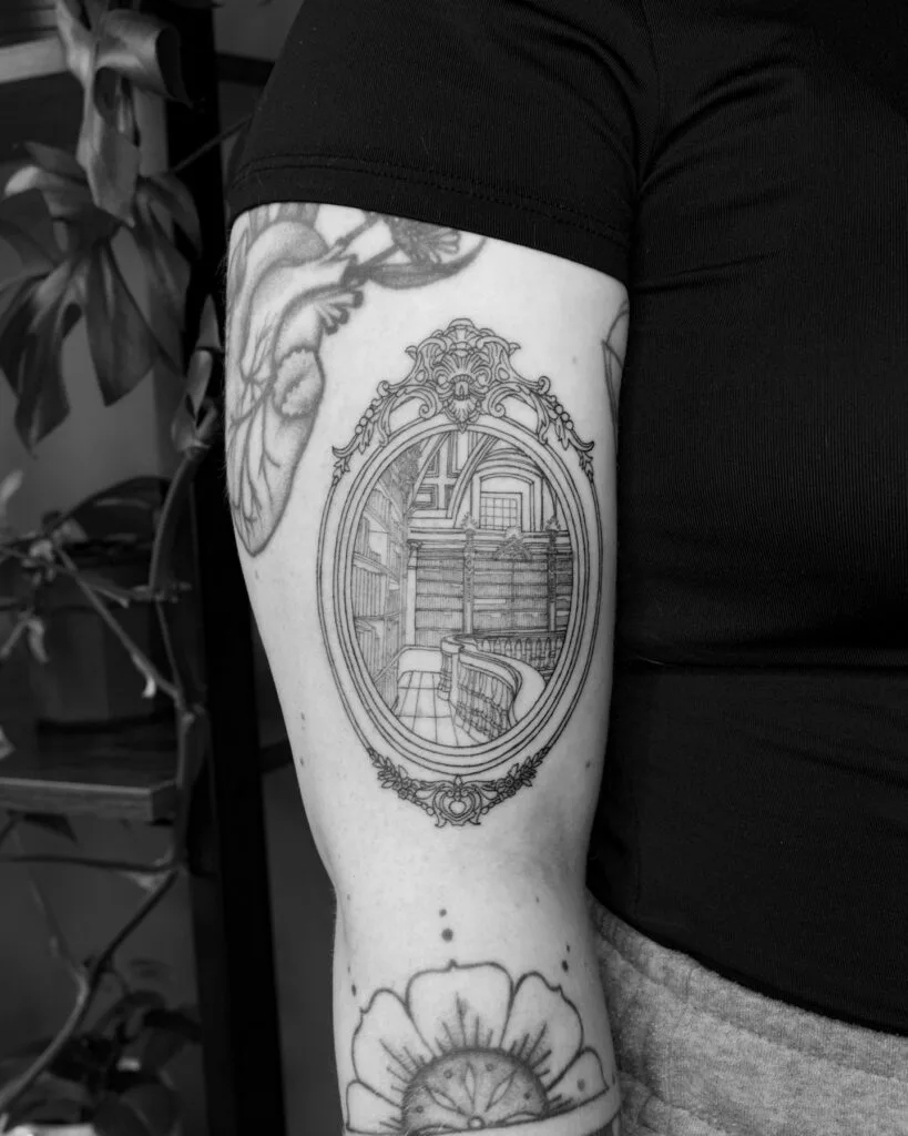 Ornate Framed Library Balcony Tattoo
