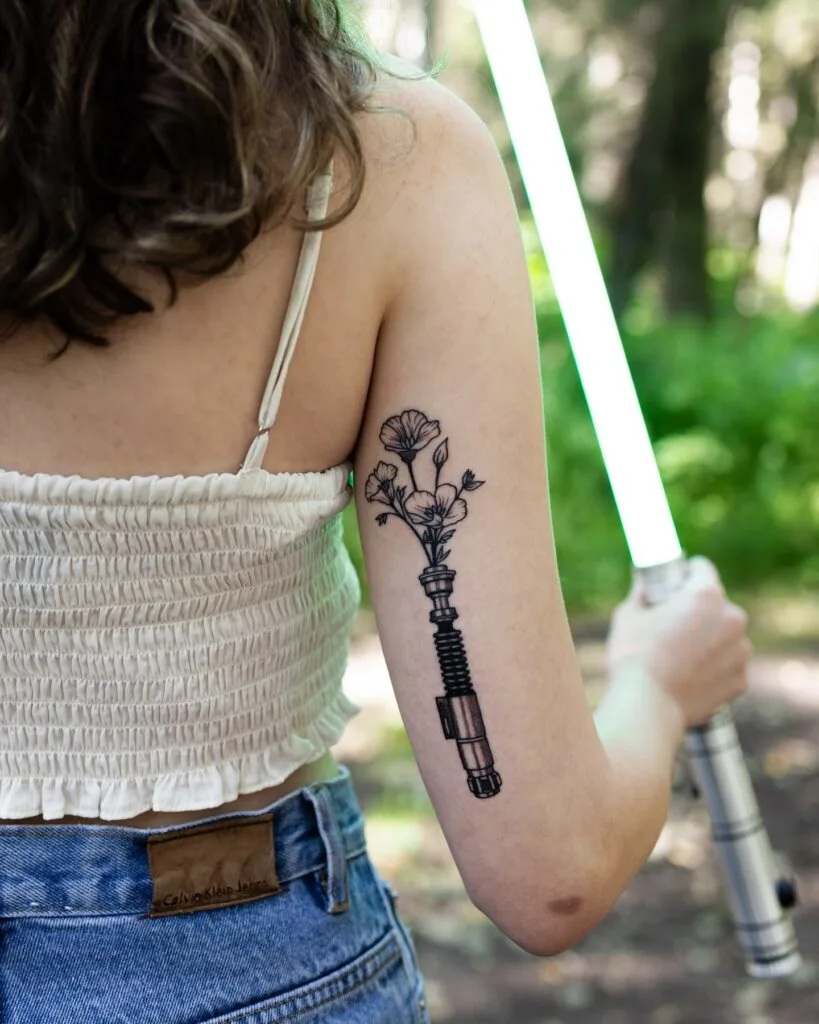 Luke Skywalker Lightsaber with Wildflower Tattoo