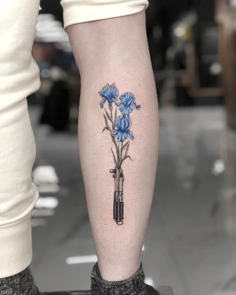 Obi-Wan Kenobi Lightsaber with Blue Iris Bouquet Tattoo