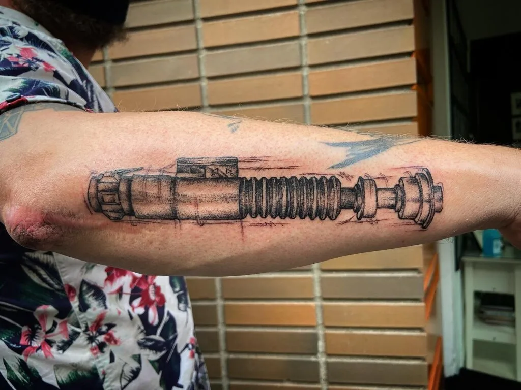 Luke Skywalker’s Lightsaber Forearm Tattoo