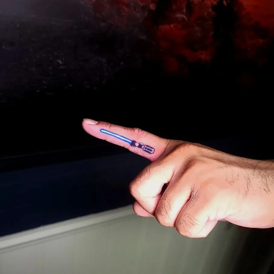 Mini Blue Lightsaber Finger Tattoo