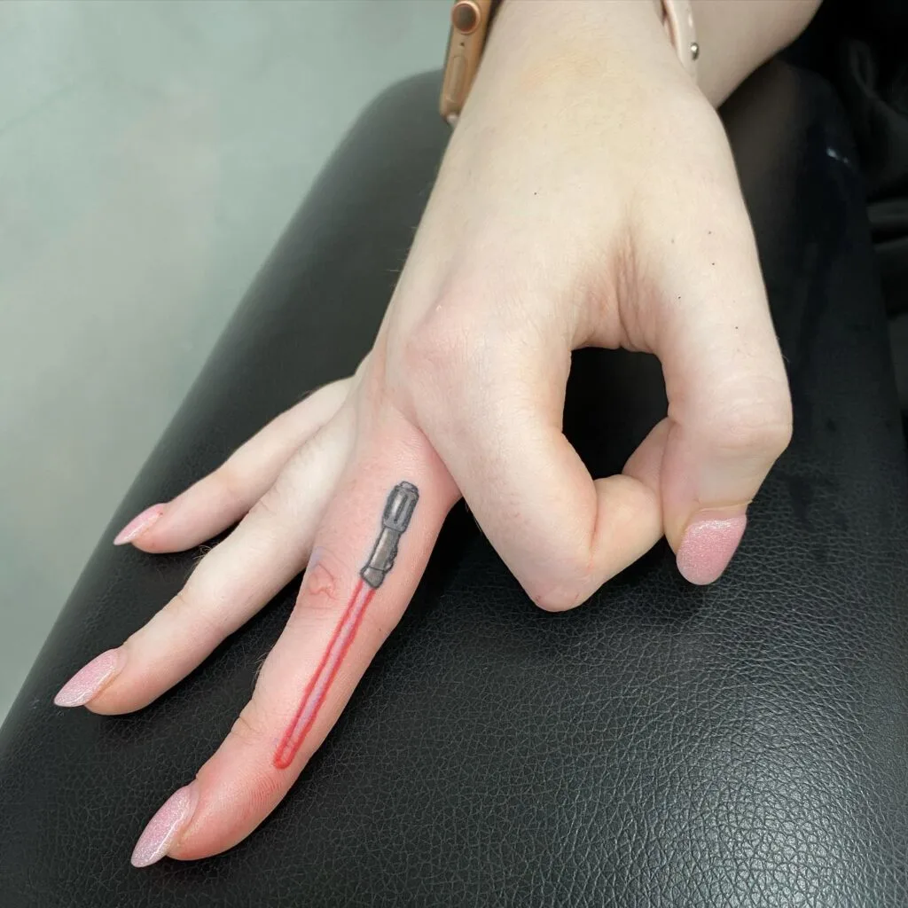 Red Lightsaber Finger Tattoo