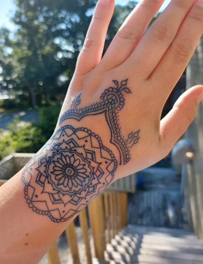 Ornamental Mandala Hand Tattoo with Lace Accents