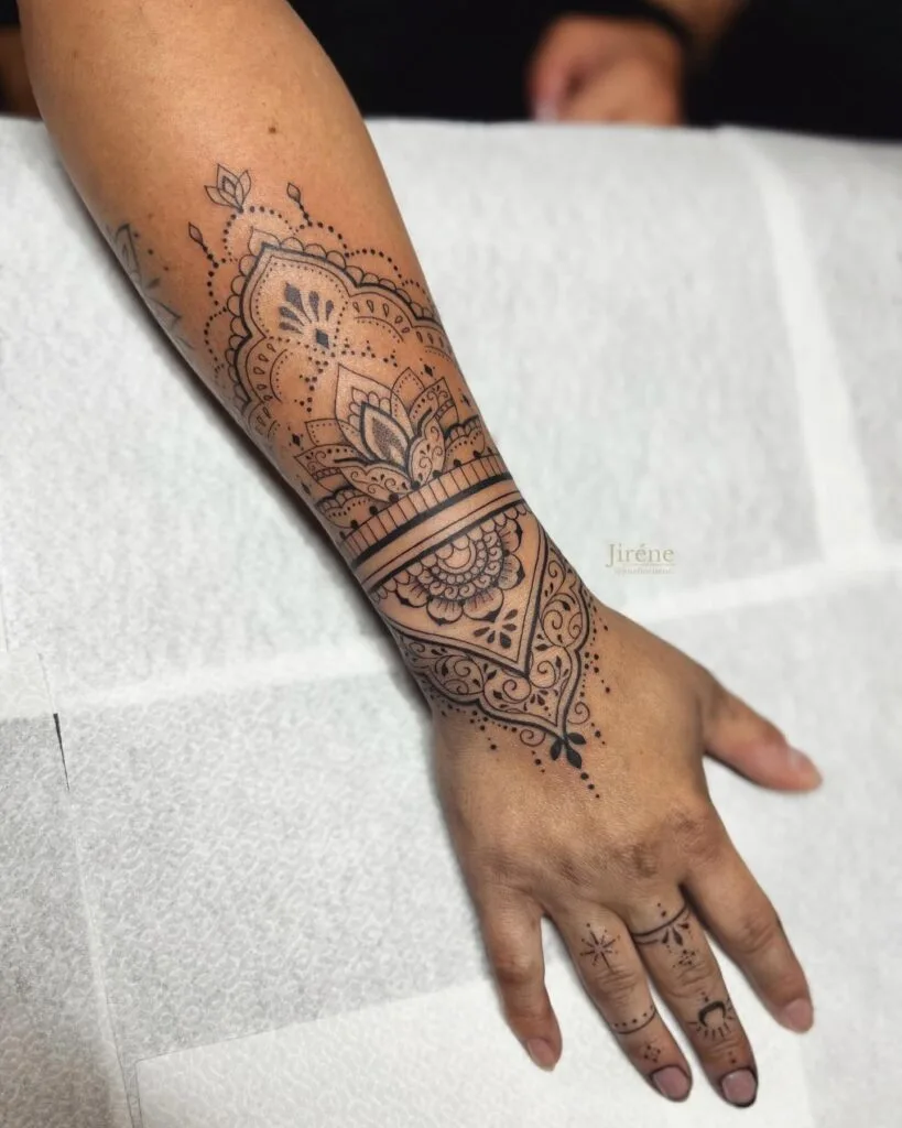 Elegant Mandala Wrist and Hand Tattoo