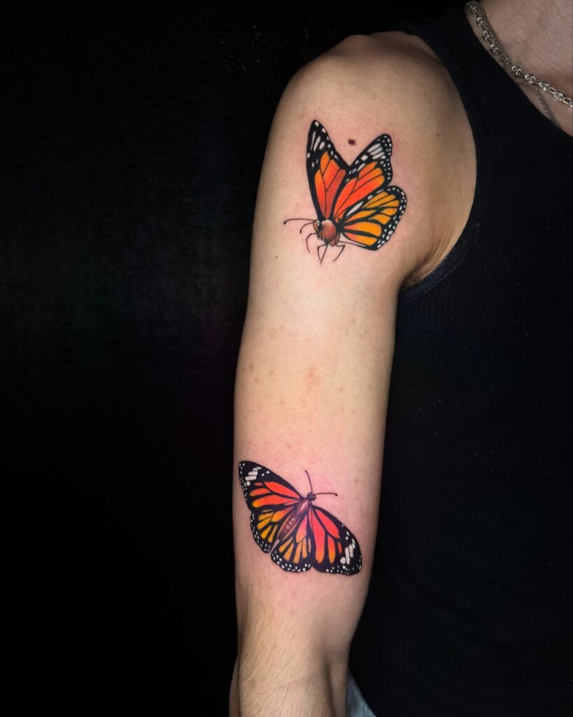 Two Monarch Butterfly Tattoos on Arm