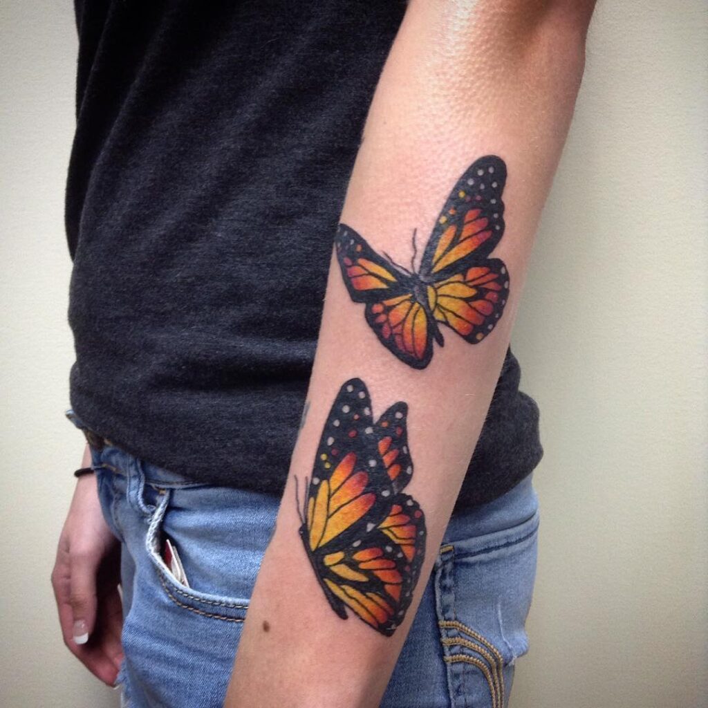 Two Monarch Butterfly Tattoos on Forearm