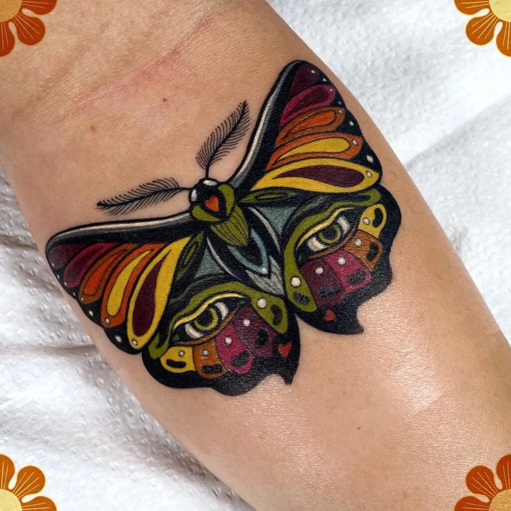 Colorful Moth Tattoo with Hidden Eyes