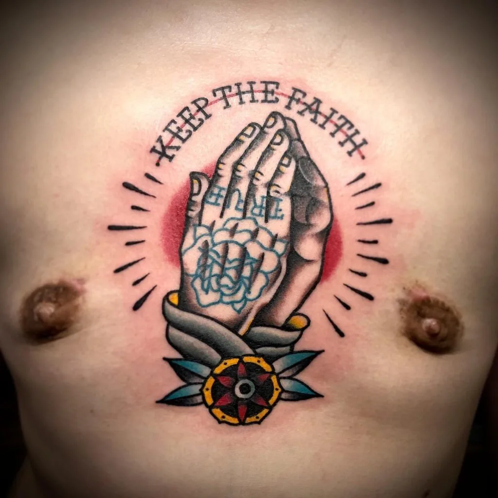 Keep the Faith Neo-Traditional Praying Hands Tattoo