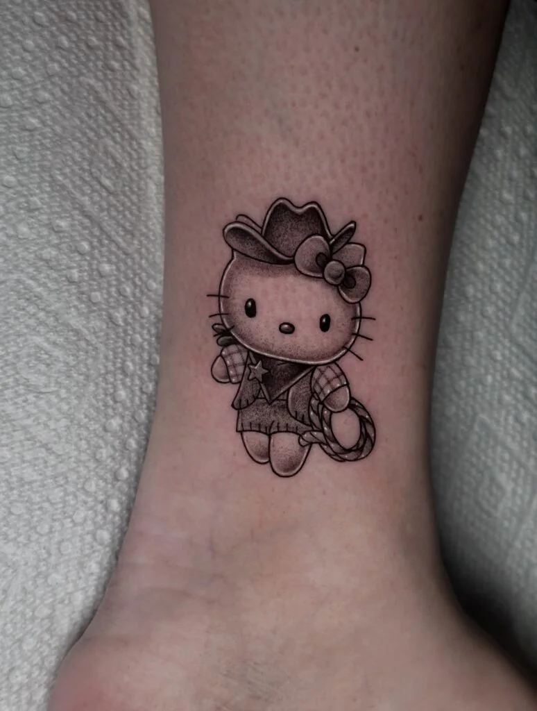 Placed on the ankle, the tattoo stands out as a cute and whimsical design. Cowgirl tattoos often symbolize independence, adventure, and free spirit, making this piece both fun and empowering.