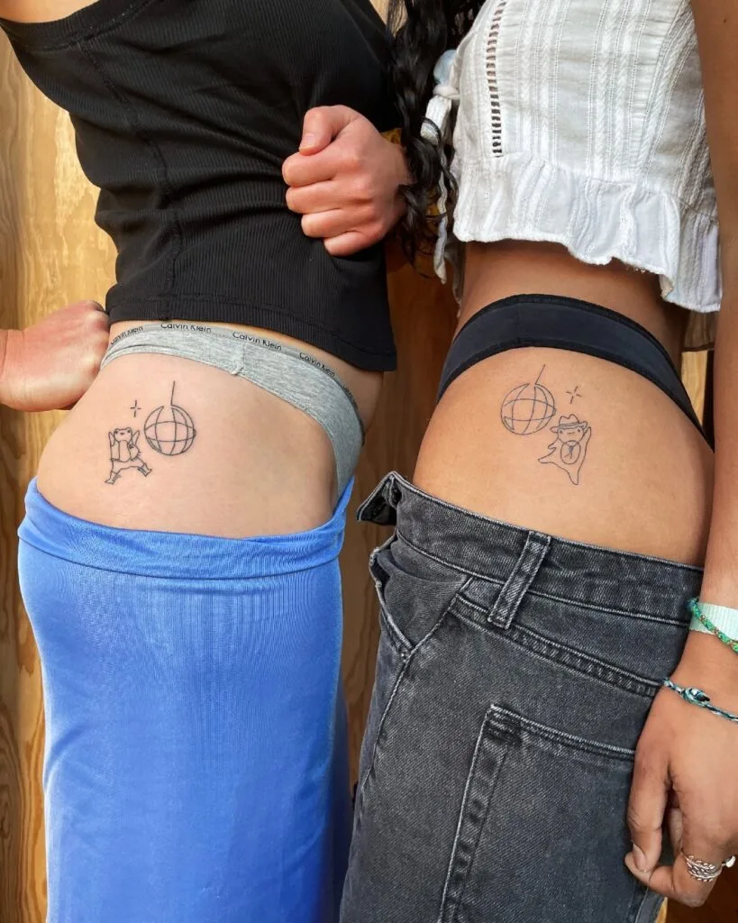 Placed on the lower leg, these tattoos are perfect for best friends who love quirky, eye-catching designs and aren’t afraid to share a daring, laugh-out-loud message wherever they go.