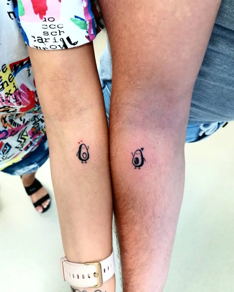 These adorable matching tattoos feature smiling avocado halves, making them perfect for couples or best friends who complete each other.