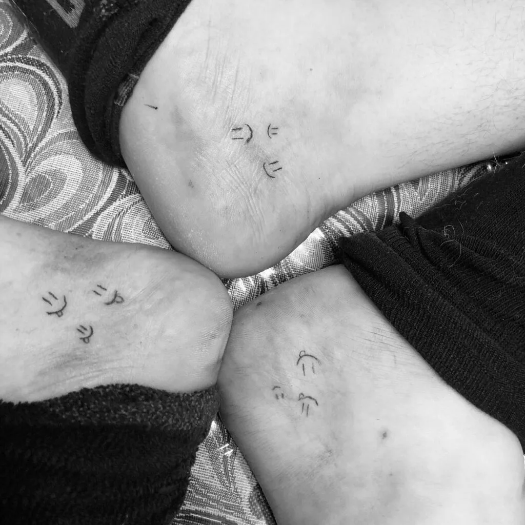 These minimalist matching tattoos feature tiny smiley faces, drawn with just a few playful curved lines.