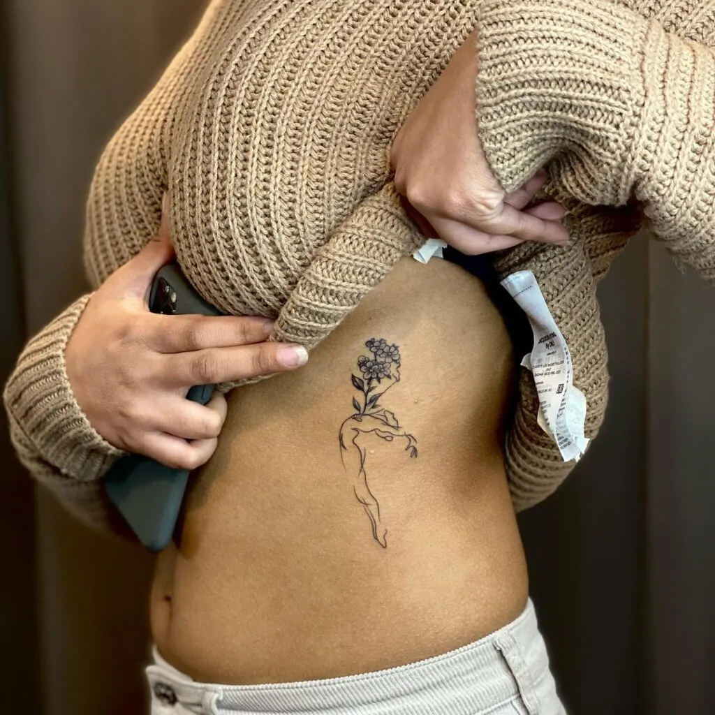 The ribs create an intimate, elegant space for small tattoos with deep personal meaning.