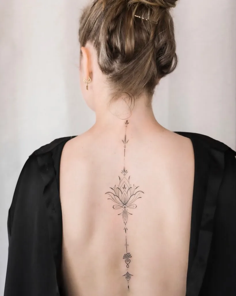 Elegant Lotus Spine Tattoo