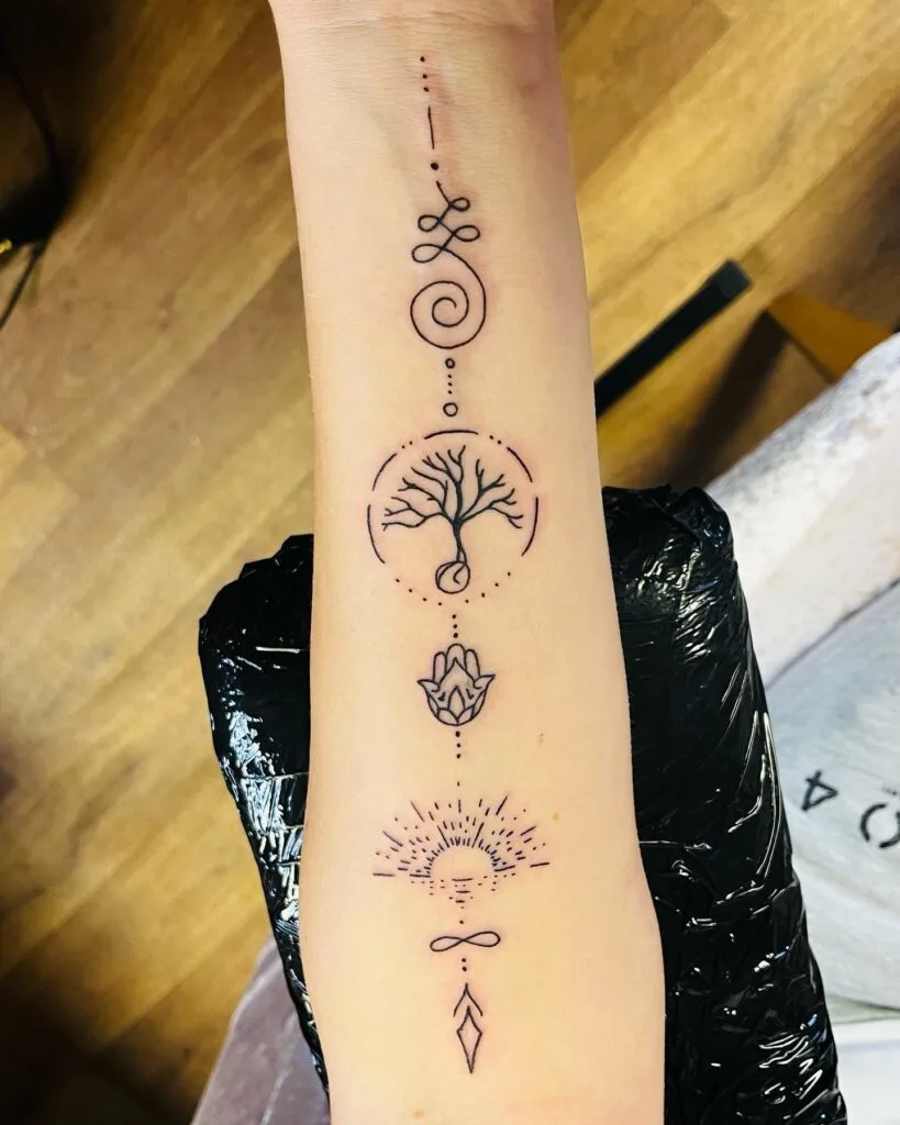 Minimalist Spiritual Journey Tattoo with Symbols of Growth