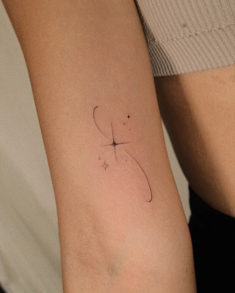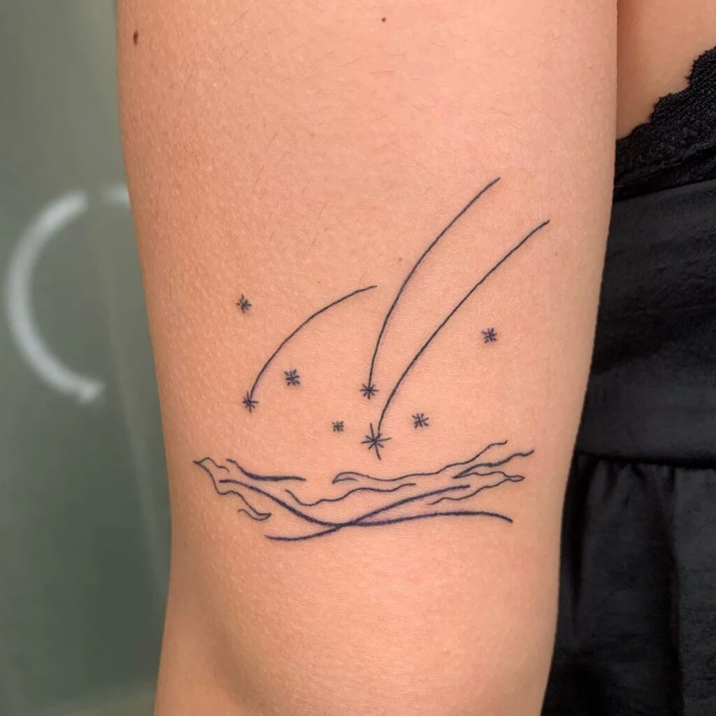 The fine, sharp points of the stars and the graceful trails give this design a refined, airy look that feels light yet meaningful. It’s a beautiful choice for those who appreciate simple, elegant tattoos that evoke feelings of hope and fleeting beauty.